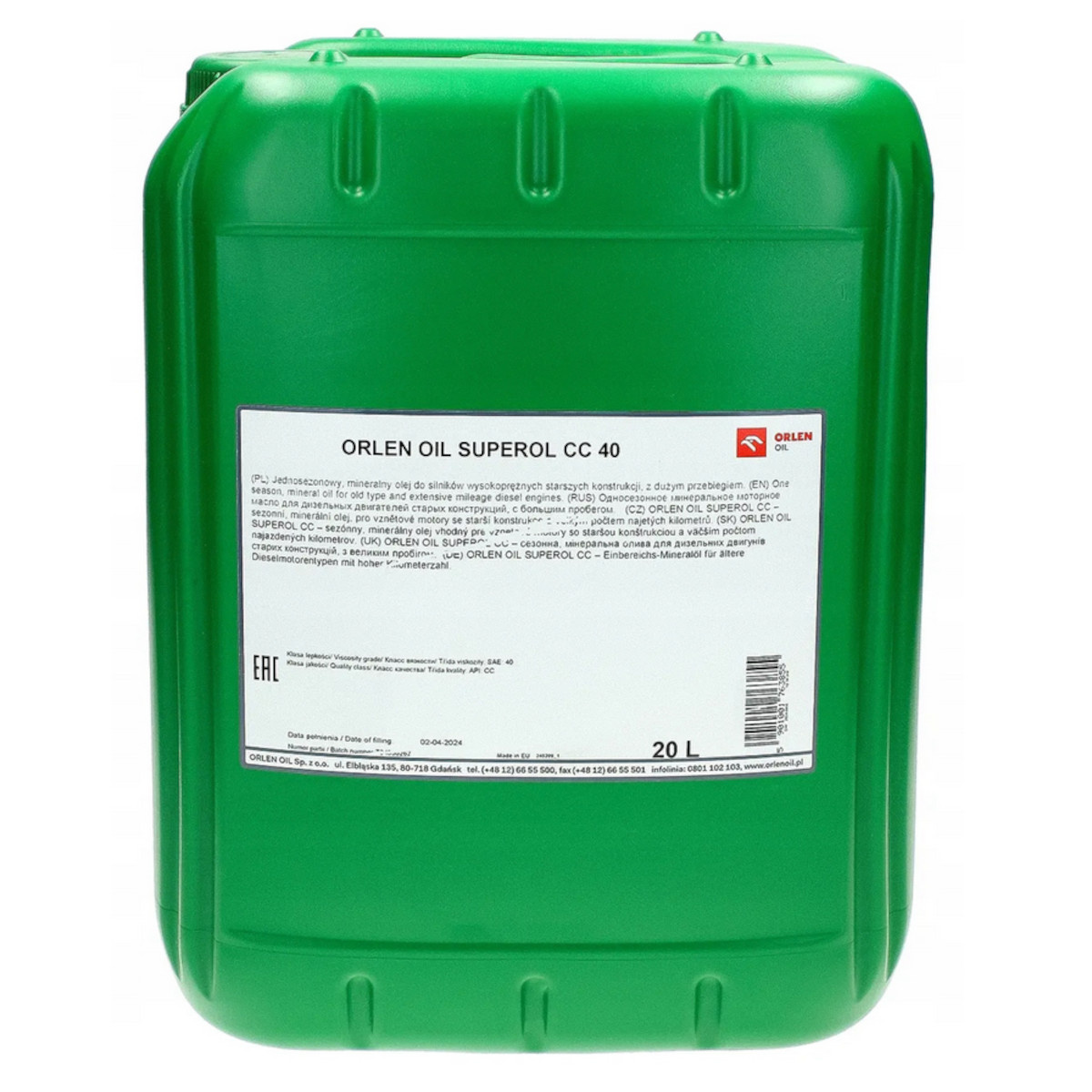 Olej silnikowy Orlen SUPEROL CC 40 to jednosezonowy olej przeznaczony do silników wysokoprężnych różnych typów, lekko doładowanych, pracujących w warunkach umiarkowanych obciążeń cieplnych i mechanicznych. Zalecany do stosowania w okresie letnim.